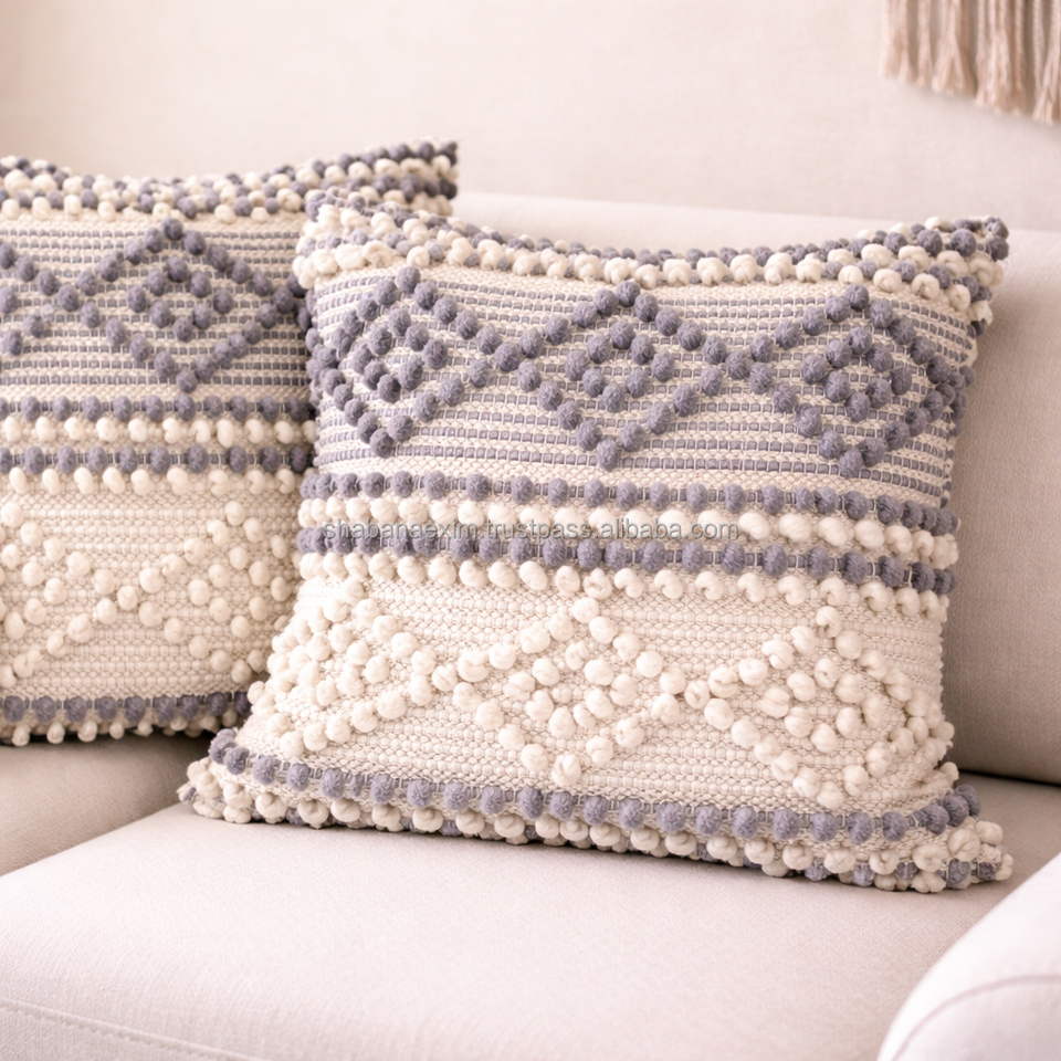 Housse de coussin bohème avec motif diamant, en laine et coton tissés à la main, lavable, fermeture éclair.