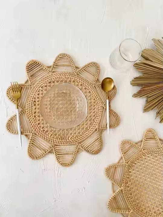 Sets de table bohème napperons en rotin pour décor de table ronde napperon fleur de forme ronde en gros Vietnam