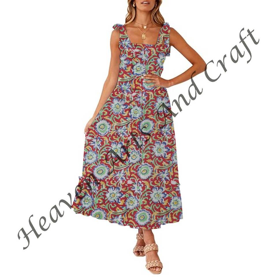 Robe Boho à Bretelles Spaghetti en Coton Imprimé pour Femmes Robe à Bretelles Spaghetti en Coton Imprimé Bloc pour Femmes Disponible