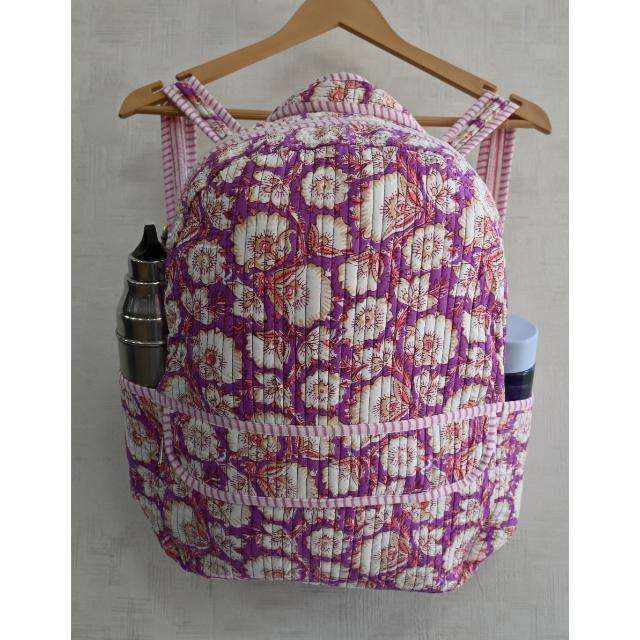 Mini sac à dos en coton matelassé bohème, léger, fait à la main, imprimé à la main en Inde, motif floral, fermeture éclair, unisexe, pour l'école, les voyages, l'usage quotidien