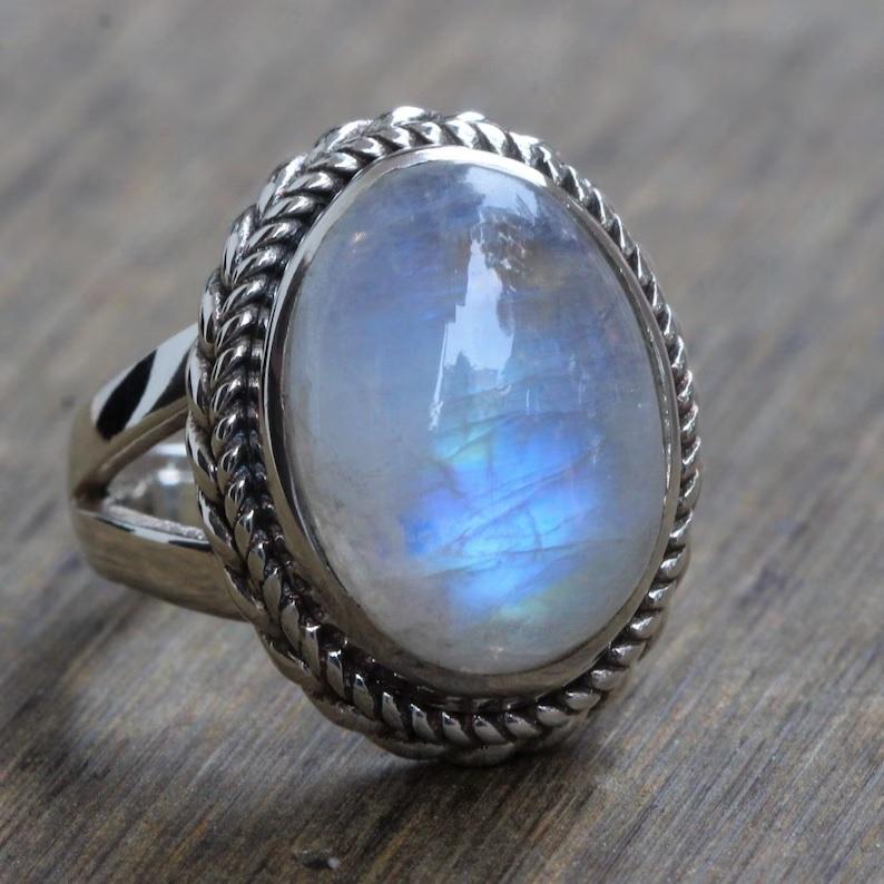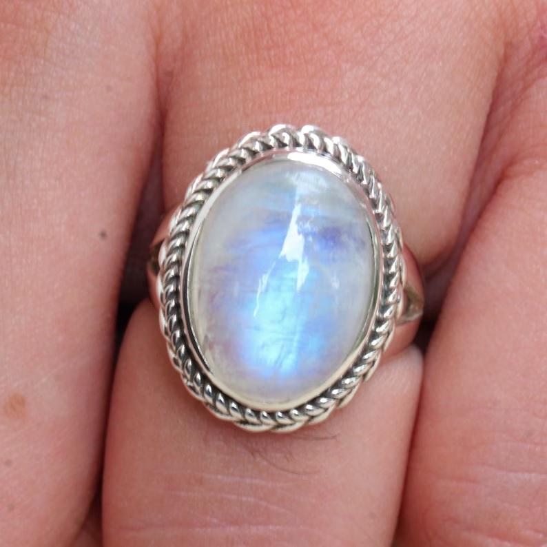 Nom du produit:Bague pierre de lune arc-en-ciel