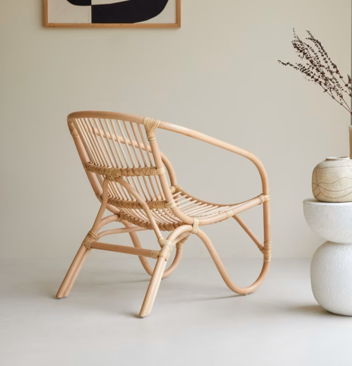 Boho Rattan Armchair Handcrafted Natural Wicker Lounge Chair for Home Cafe & Restaurant for Dining Room Home & Vietnam
