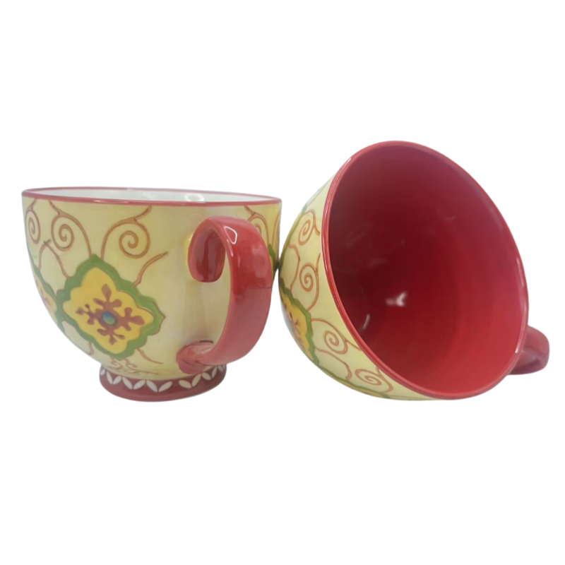 Tasses à lait en céramique peintes à la main de style bohème, 15 oz, motif persan dessiné à la main, cadeau mignon, compatibles lave-vaisselle, écologiques