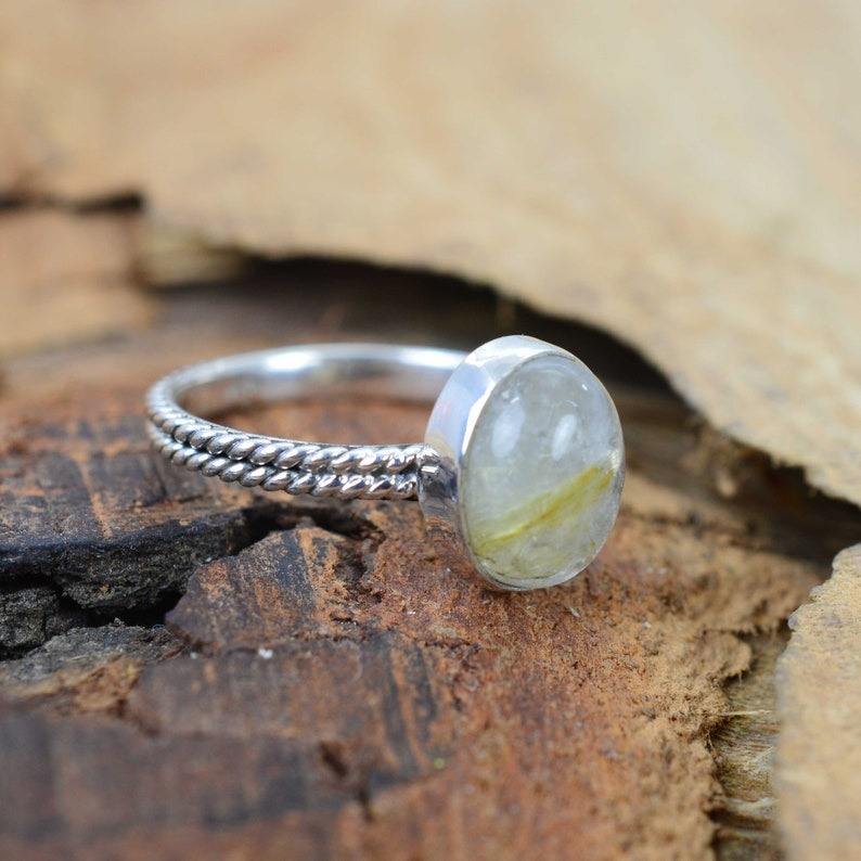 Boho Style 925 argent Sterling doré rutile pierres précieuses bague bijoux à la main bague en argent bijoux pour femmes cadeau de mariage pour elle