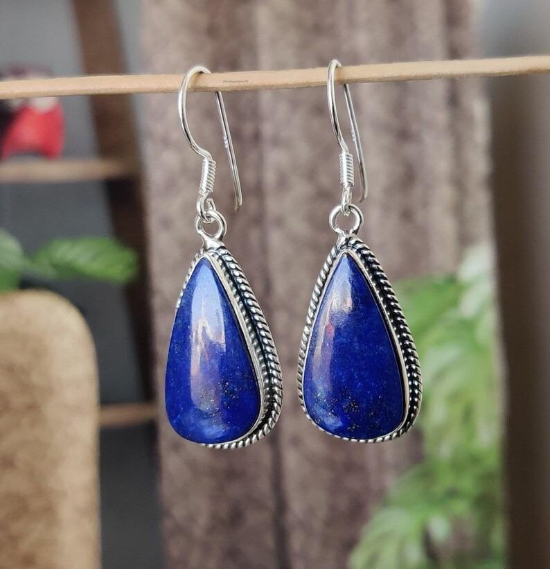 Boho Style 925 Sterling Silver Lapis Gemstone Boucles D'oreilles Bijoux À La Main Boucles D'oreilles En Argent Bijoux Pour Femmes Cadeau De Mariage Pour Elle