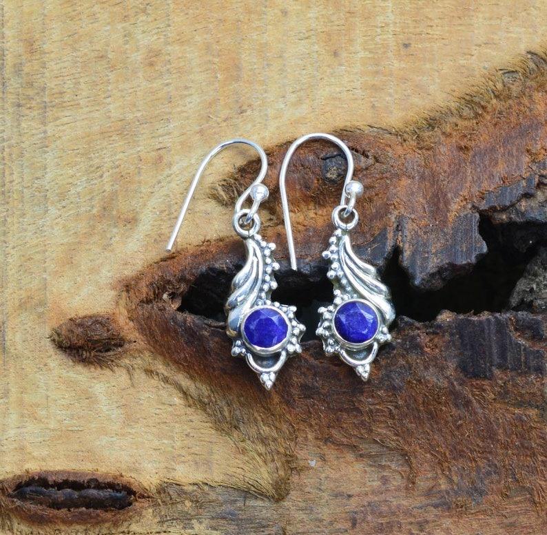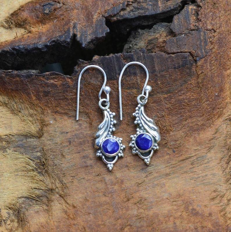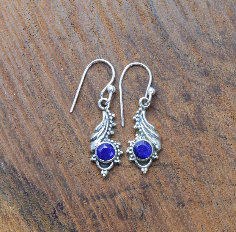 Boho Style 925 argent Sterling saphir pierres précieuses boucles d'oreilles bijoux à la main boucles d'oreilles en argent bijoux pour femmes cadeau de mariage