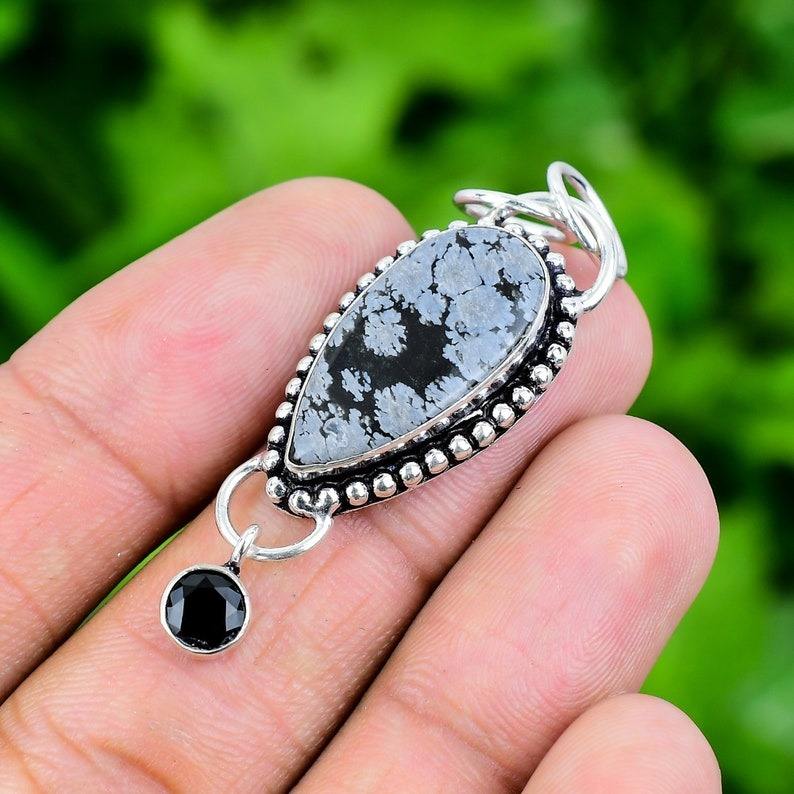 Boho Style classique pendentif bijoux pour femmes bijoux en argent 925 argent Sterling flocon de neige pierre précieuse pendentif fait main cadeau pour
