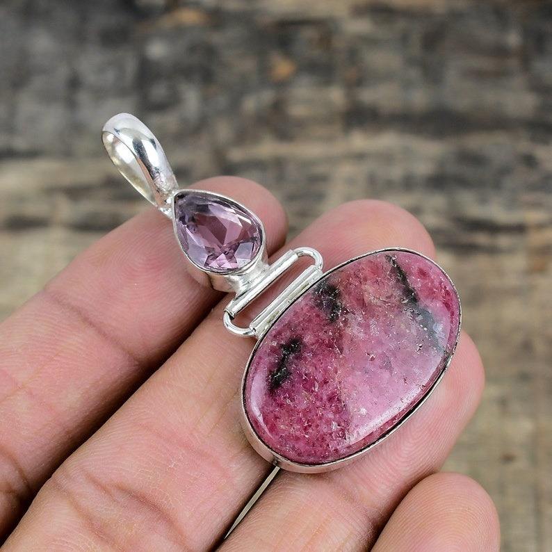Boho Style Classique Pendentif Bijoux Pour Femmes Bijoux En Argent 925 Sterling Argent Rhodonite Gemme À La Main Pendentif Cadeau Pour