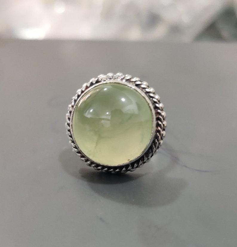 Boho Style classique bague bijoux pour femmes bijoux en argent 925 en argent Sterling Prehnite pierre précieuse à la main bague cadeau pour l'amour