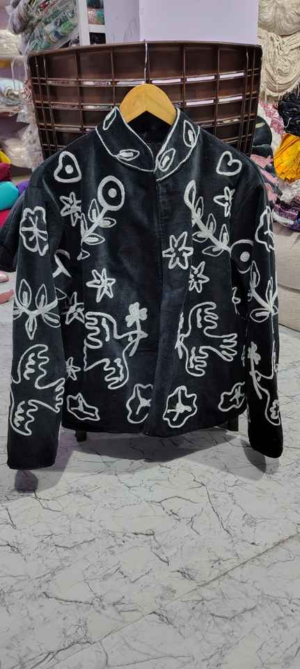 Boho Style Hand Embroidered Velvet Short Jacket with Crewel Work