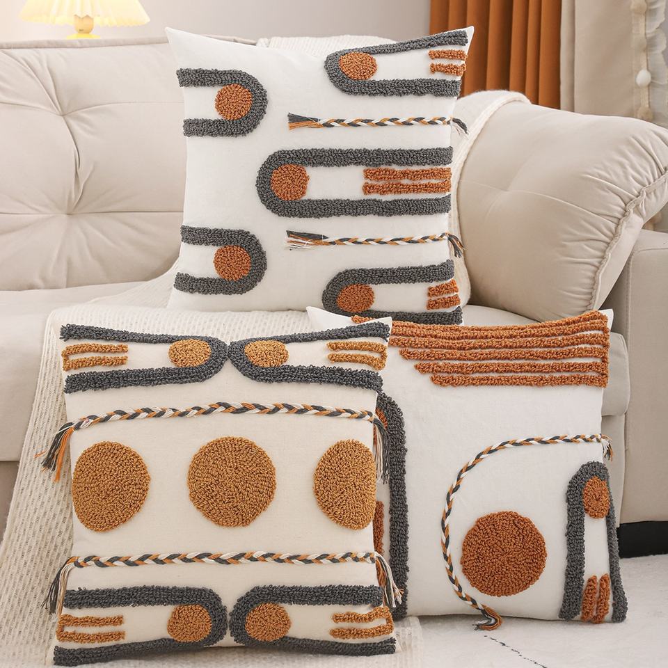 Style Boho touffeté personnalisable fermeture à glissière 18*18 jeter taie d'oreiller toile brodé tissé carré pour la maison hôtel vie