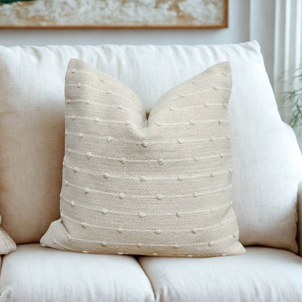Housse de coussin carrée tissée style bohème avec petits pompons minimalistes, pliable, luxueuse et douce
