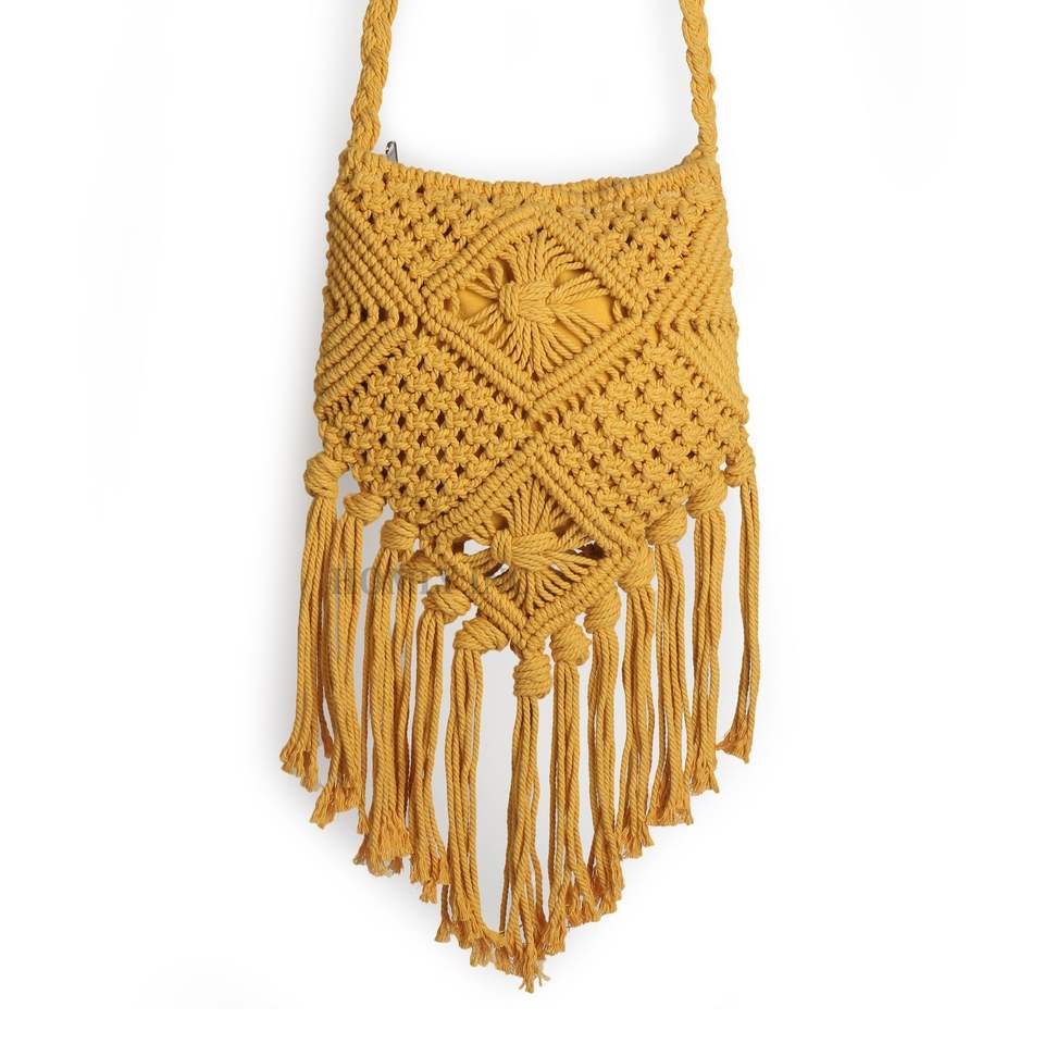 Sac à bandoulière en macramé jaune de style Boho fait à la main à partir de cordon de coton naturel pour dames tissé à la main en Inde