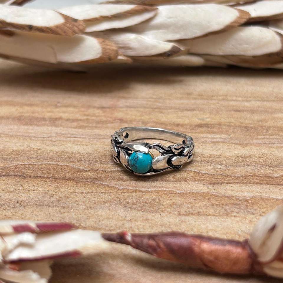 Bague Statement Classique Bohème Turquoise en Laiton Plaqué Or 18K Finition Argent Oxydé pour Femme, Design Ethnique avec Pierre