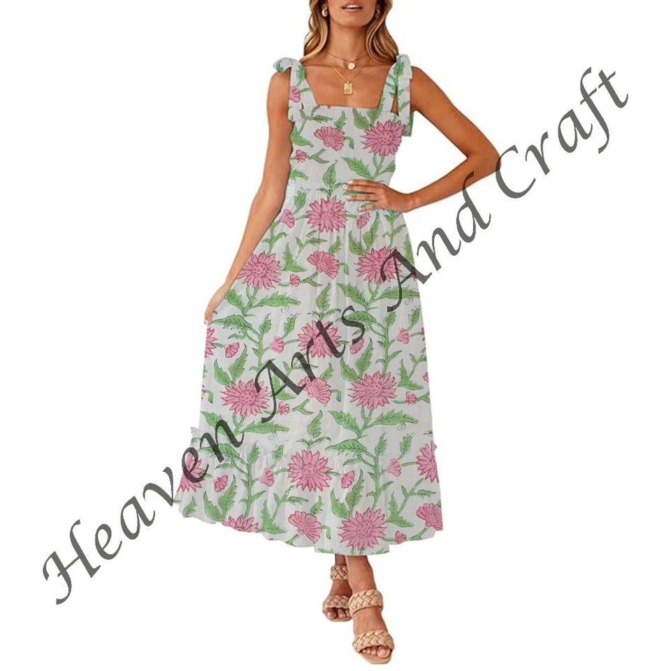 Model Number:Hand Block Printed Spaghetti Strap Dress