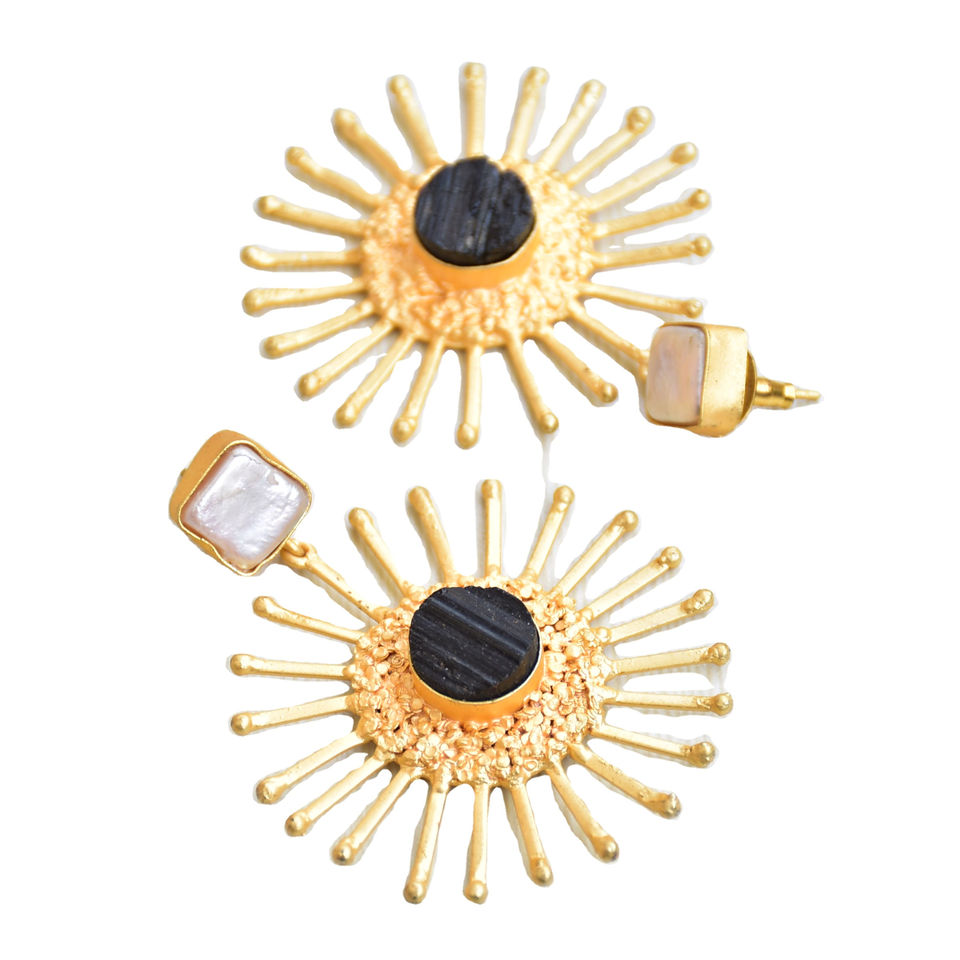 Nom ou mots:Statement Pearl with Black tourmaline earrings