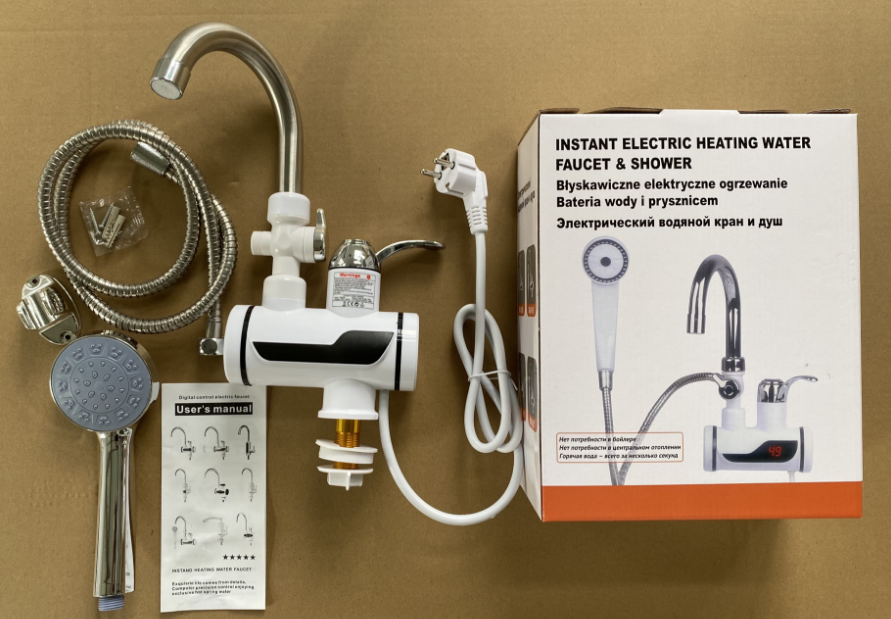 Robinet chauffe-eau instantané électrique Bokai RX-018 en acier inoxydable, affichage LED, étanche IPx4, 3000W