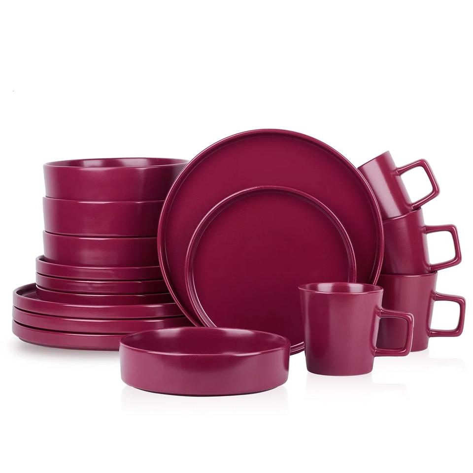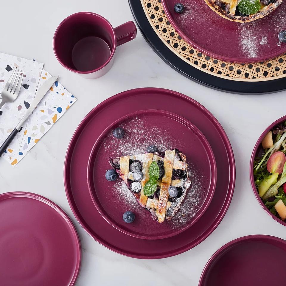 Ensemble d'assiettes à dîner en céramique Bold Berry, finition satinée lisse, design rond contemporain, durable, empilable, pour les espaces repas tendance