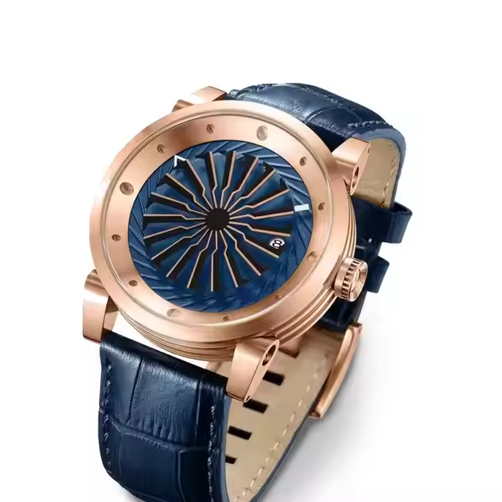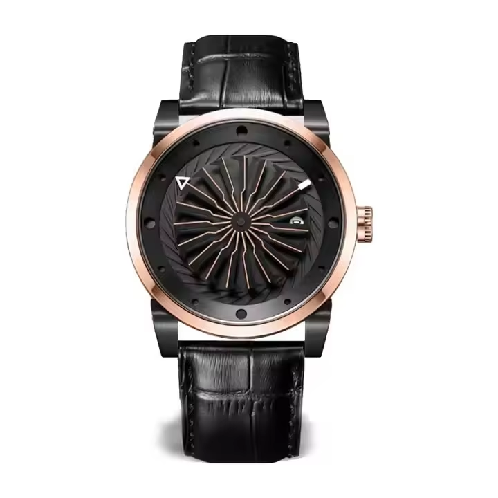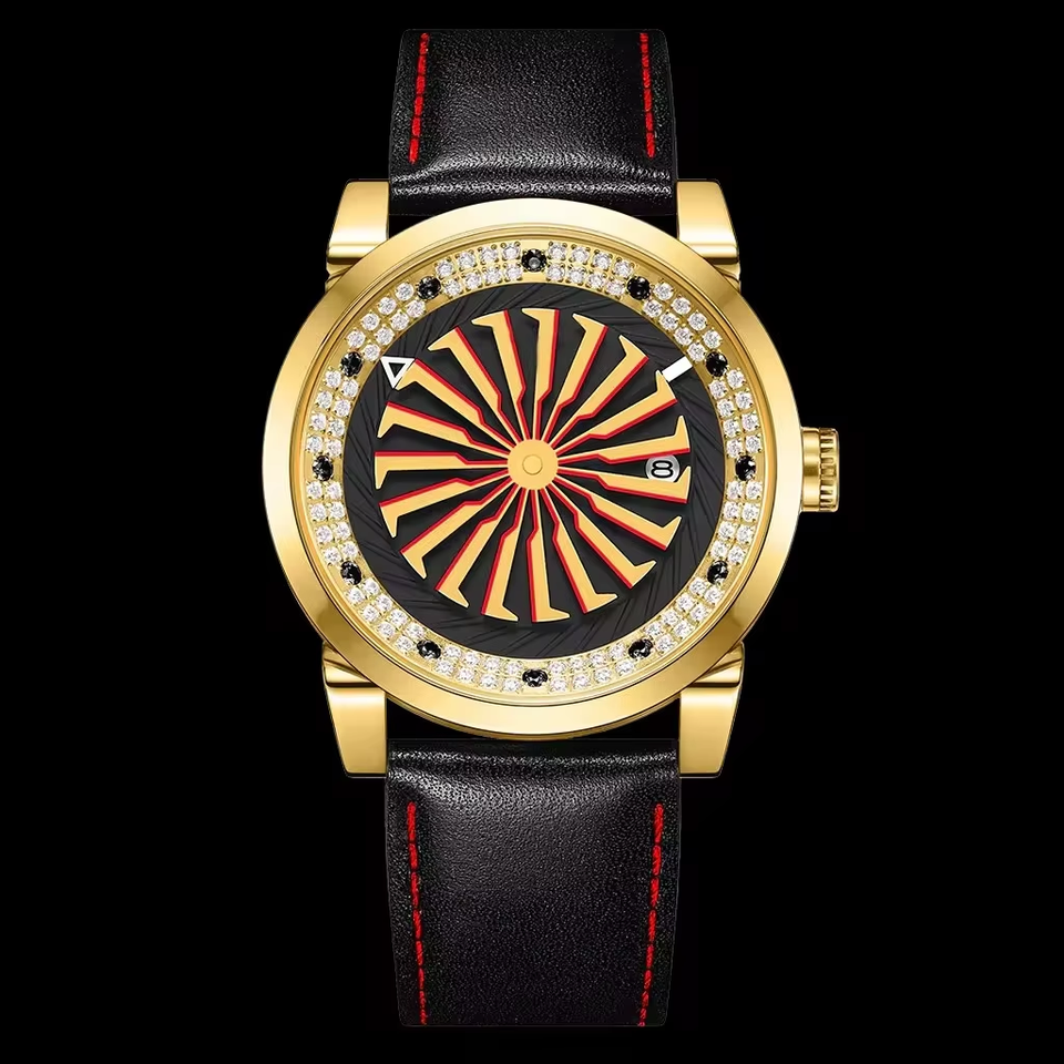Montre mécanique Bold Designer pour homme avec cadran en spirale Accents Moissanite et bracelet en cuir Options multicolores