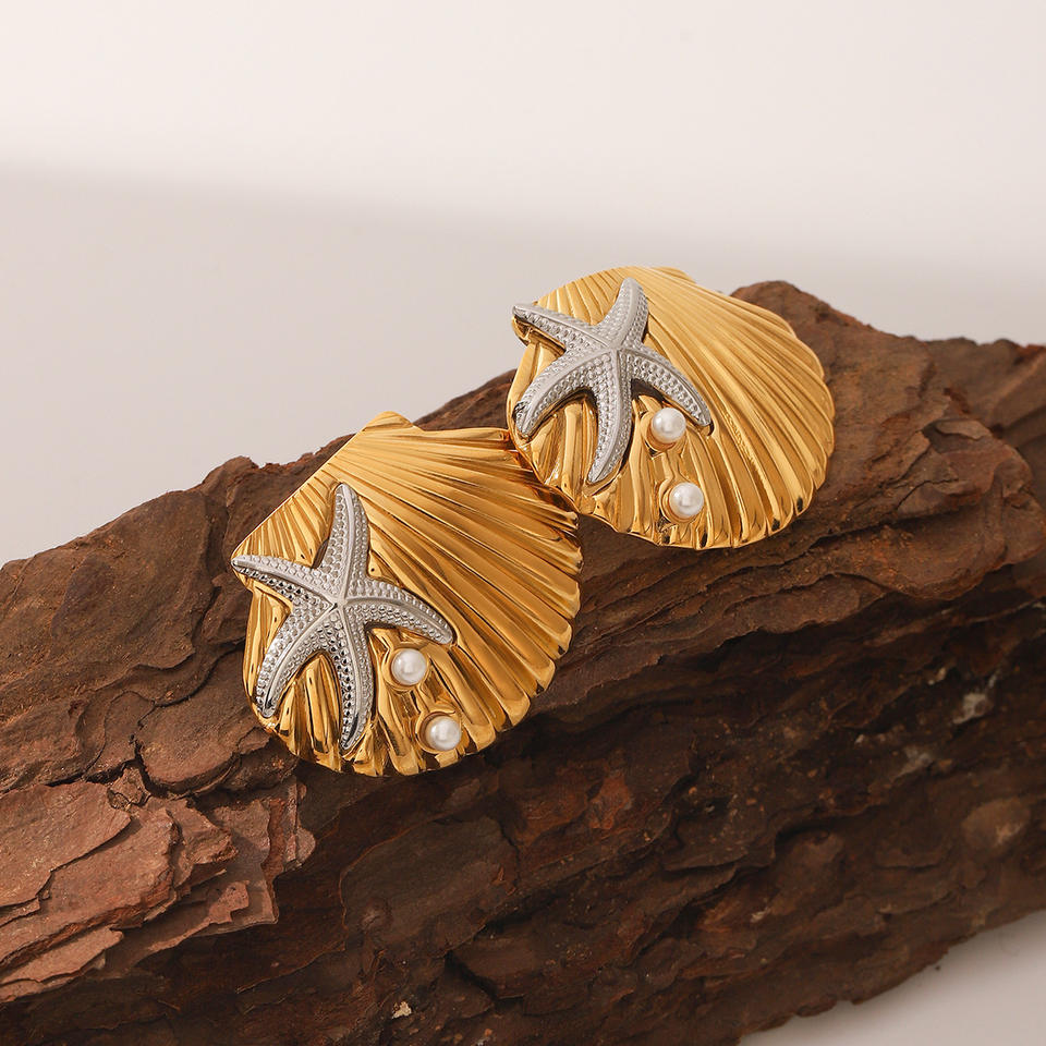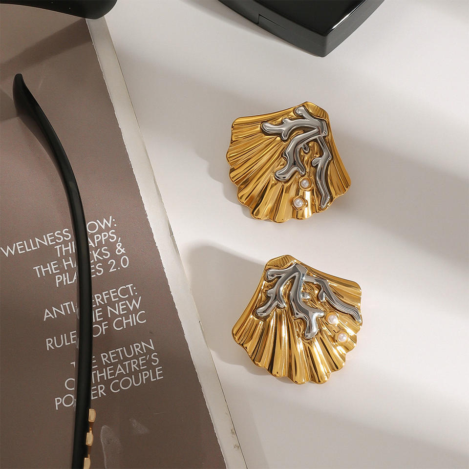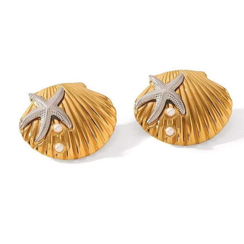 Boucles d'oreilles audacieuses en acier inoxydable plaqué or avec coquillages pour femmes – Vente en gros