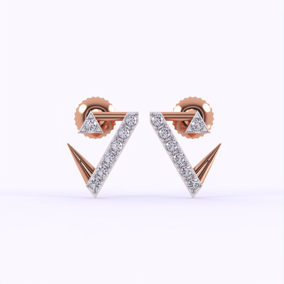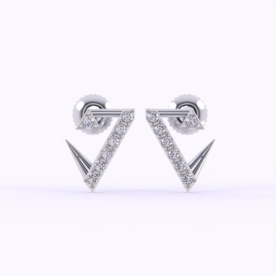 Boucles d'oreilles micro pavées en diamant Moissanite taillé en or massif 14 carats avec pointe de prisme unique