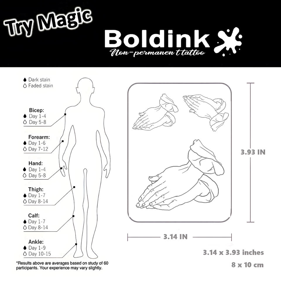 Tatouage semi-permanent Boldink Black Praying Hands, encre Jagua Juice, résistant à l'eau, longue tenue 2 semaines, art corporel.