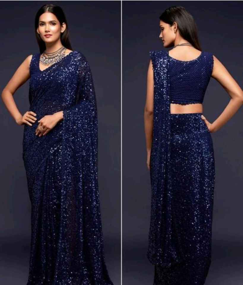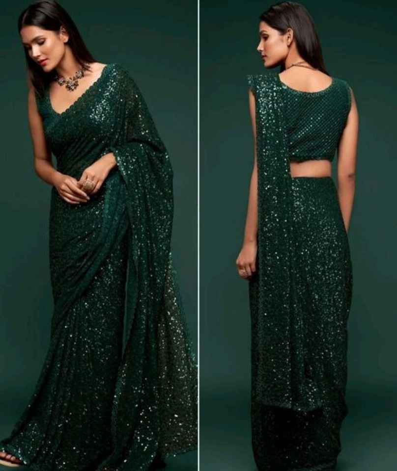 Bollywood Belle Georgette Avec Lourd 5MM Effacer Séquence Brodé Travail Saree Collection