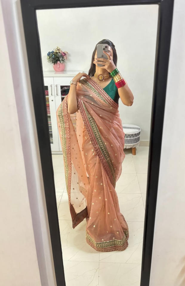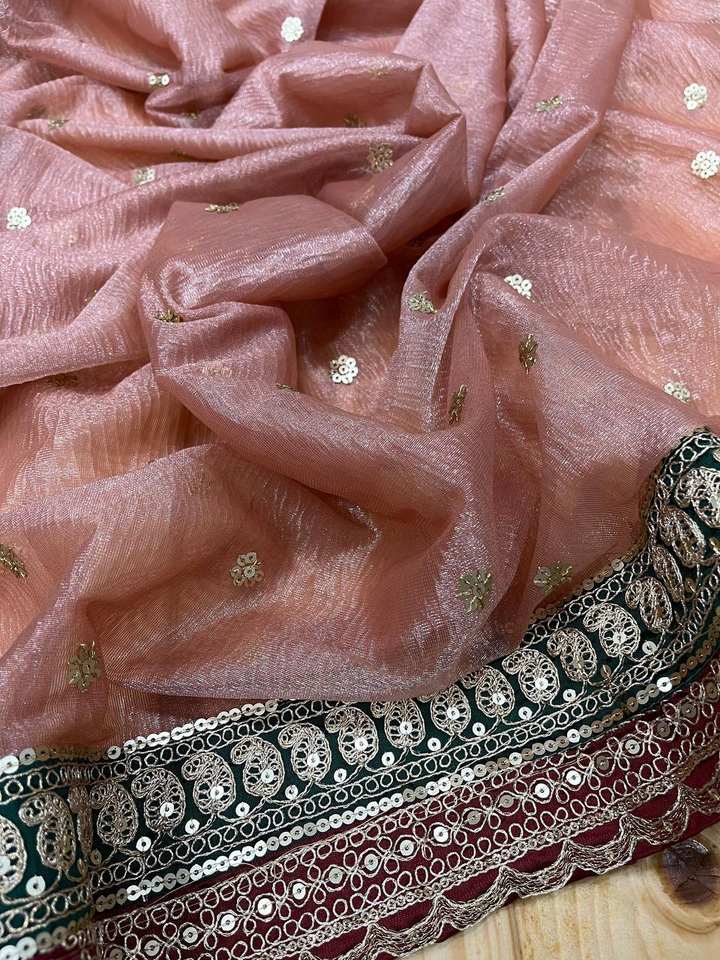 Sari en soie georgette tissé à la main par des designers de Bollywood, motif rose, léger, sans plis, VESTA EXPORTS, grossiste en Inde