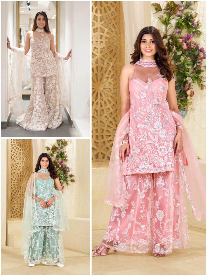Bollywood Designer Top-Palazzo Collection Papillon Net Tissus Avec Séquence Broderie Travail Pour Les Femmes Fête Et De Mariage Porter