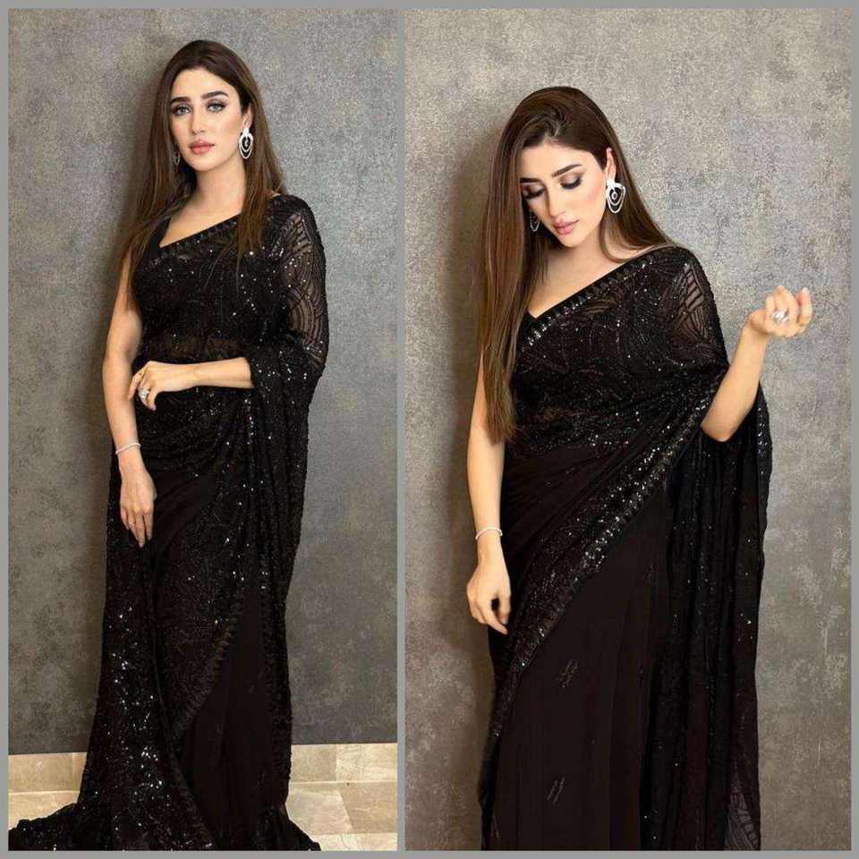 Sari inspiré de Bollywood avec travail de séquence pour un look de réception ou de cocktail, élégant et tendance, produit le plus vendu, exclusif