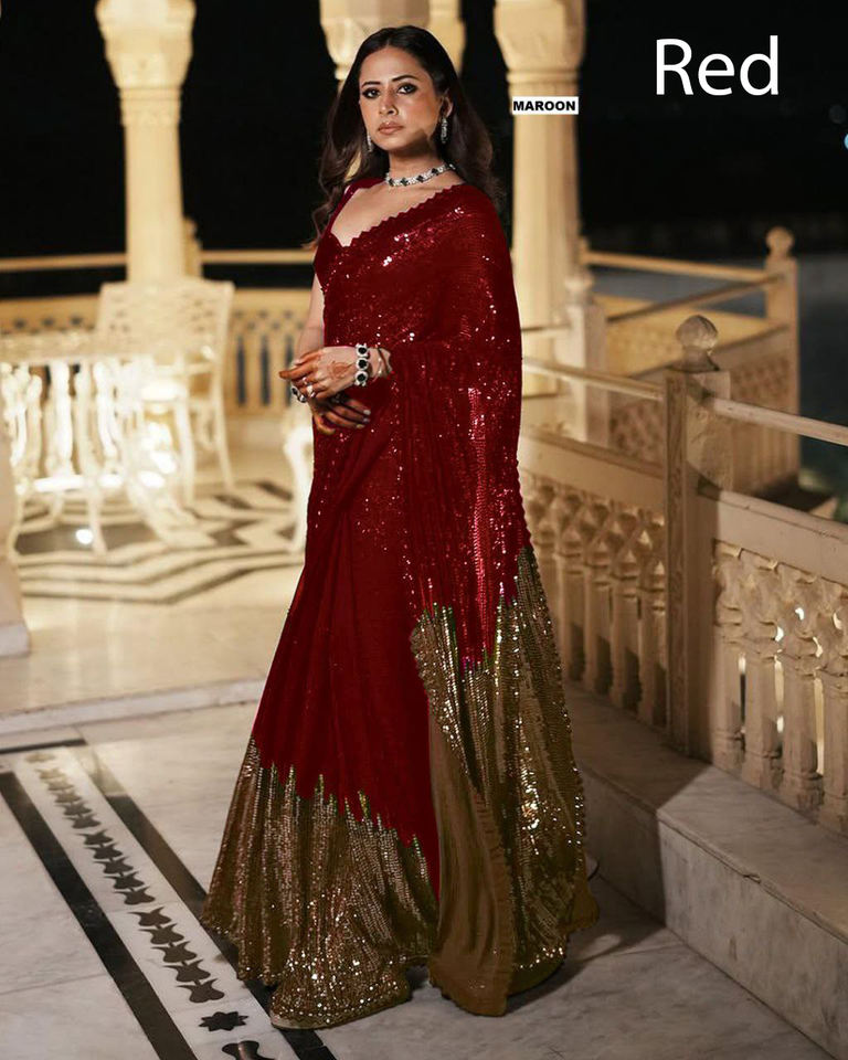 Sari indien Bollywood à sequins, couleur tendance, pour femmes, prêt-à-porter, achat en ligne