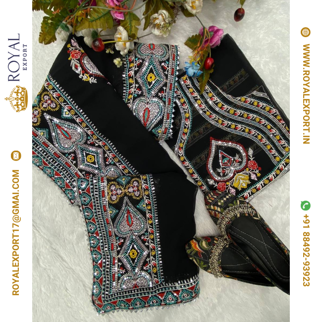 Bollywood Style Designer Faux Georgette Séquence Broderie Travail Saree Collection Au Prix De Gros Par Royal Export Surat