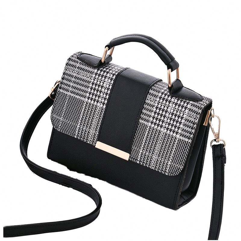 Bolsa feminina de atacado direto da fabrica com corrente estampa de diamantes em couro PU modelo transversal com fecho preta