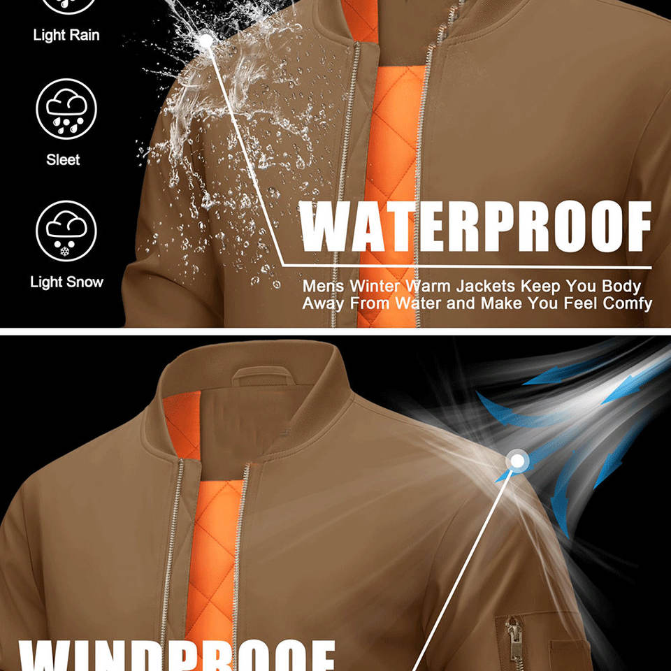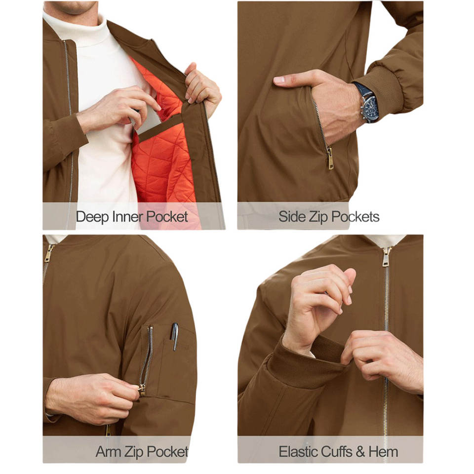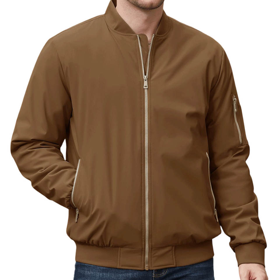 Blouson Bomber pour Homme – Fermeture Personnalisable OEM, Logo sur la Fermeture Éclair Avant, Manches Longues, Poignets Élastiques – Vestes pour Homme