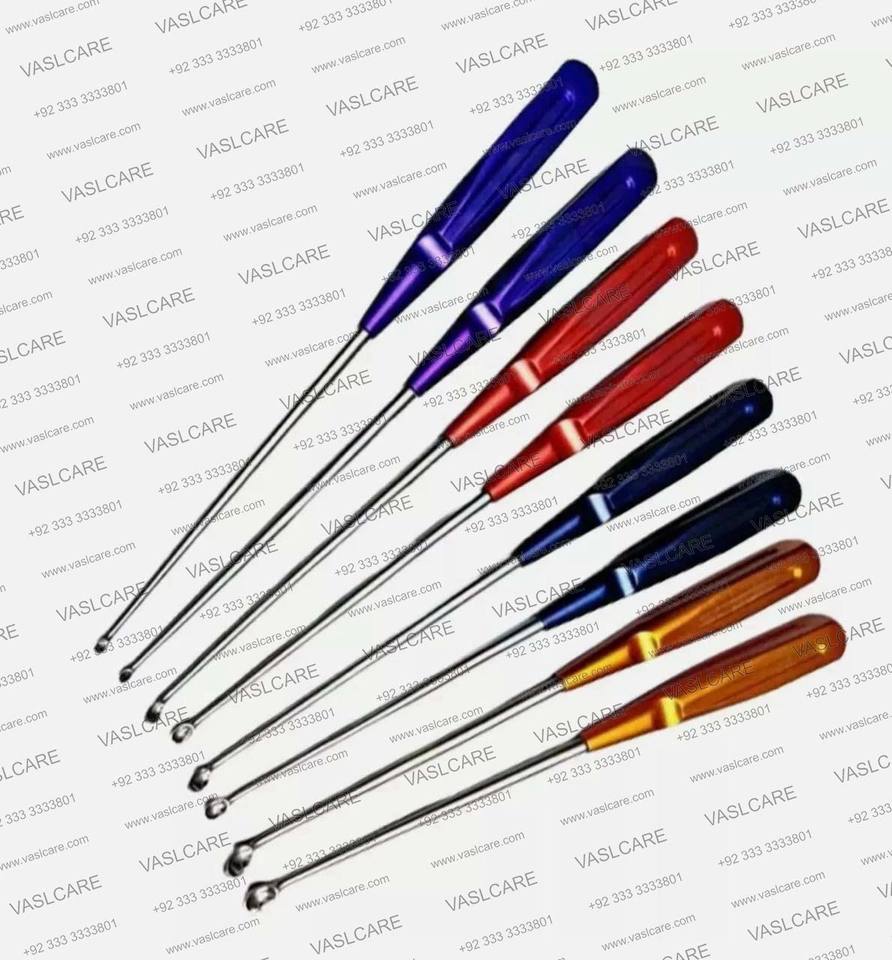 Curettes cervicales en os Instruments orthopédiques pour la colonne vertébrale Ensemble de 8 Curettes chirurgicales pour la colonne vertébrale Outils de neurochirurgie en acier inoxydable