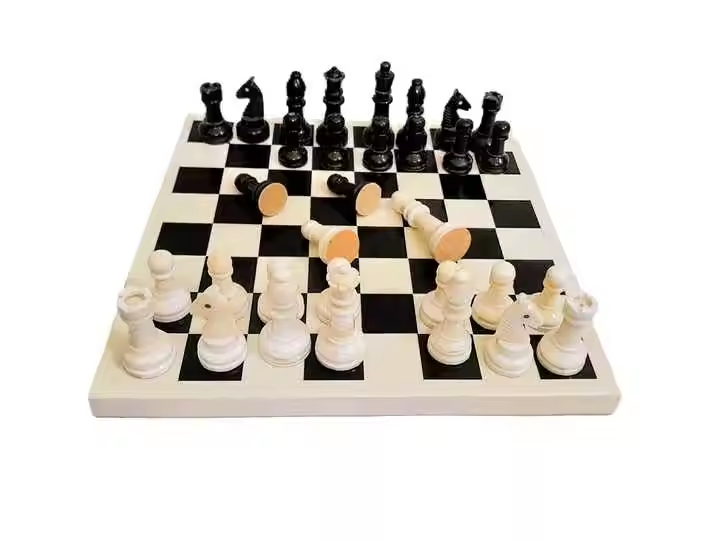 Jeu d'échecs unisexe en os et en corne avec pièces d'échecs incrustées à la main et plateau d'échecs de conception Crescent Crafts Residency modèle CC-7859