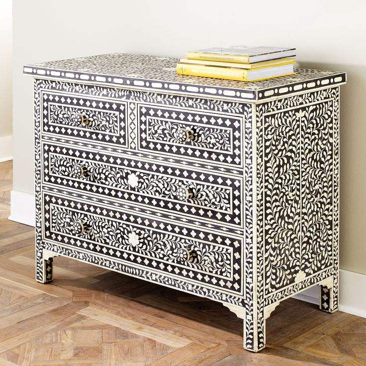 Table de chevet en os incrusté avec tiroirs et portes, artisanat indien, objets décoratifs de haute qualité et respectueux de l'environnement