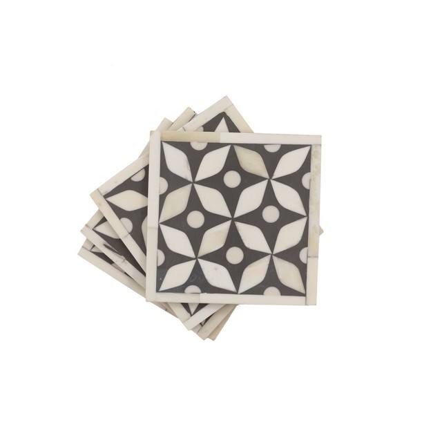 Sous-verre noir et blanc en incrustation d'os pour verre et thé Coquillage Sous-verres à café Design floral de haute qualité MOP Incrustation ronde