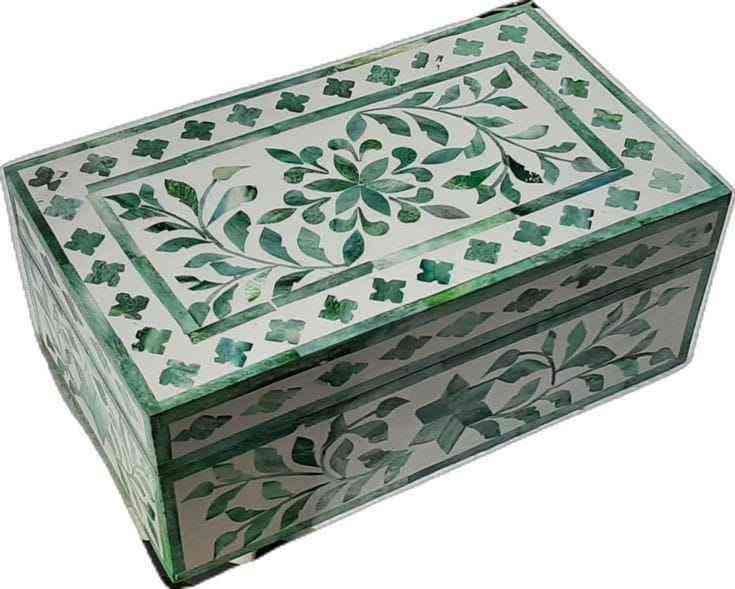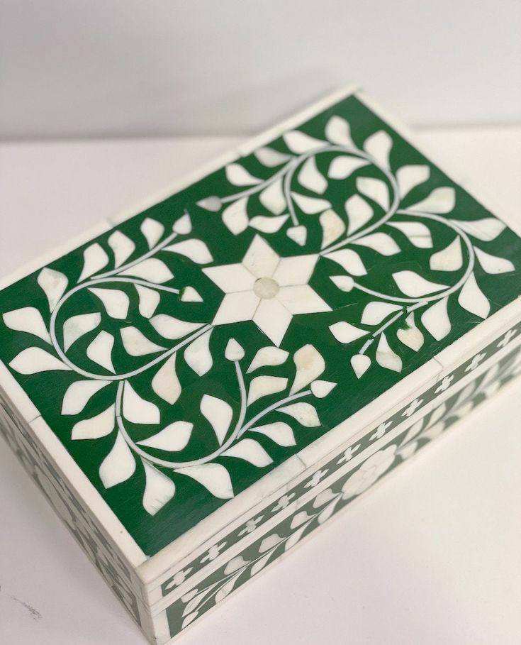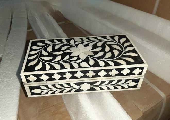 Boîte d'incrustation en os écologique avec design Feng Shui et fleur pour le stockage de cadeaux et de bijoux-Intérieur doux pour les articles délicats