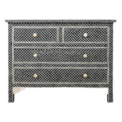 Description:Coffre à 4 tiroirs en incrustation d'os