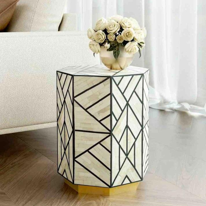 Tabouret d'appoint en os incrusté de qualité supérieure, écologique, design moderne, fait main, personnalisable, meubles de chambre à coucher, Royal Decore Mart