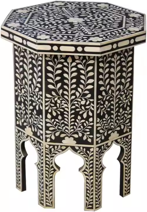 Tabouret latéral de console en incrustation d'os Tabouret latéral de lit géométrique ou meuble d'incrustation d'os de table par Crescent Crafts