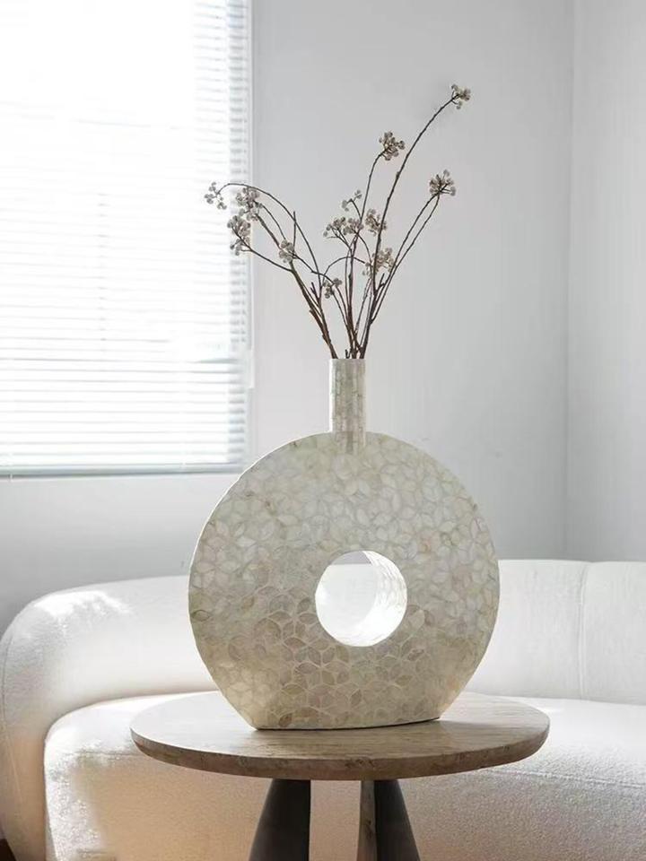 Jardinière en métal avec incrustation de os, faite à la main, de forme ronde, style minimaliste, pour la décoration de la maison, produit de luxe, exportations en gros
