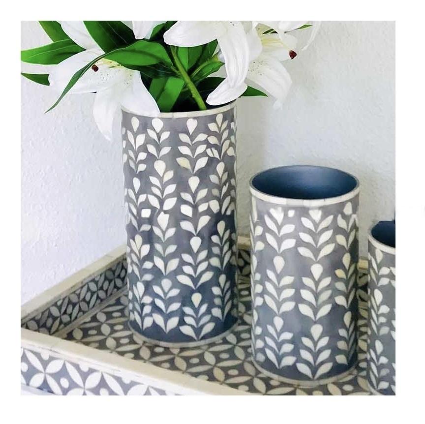 Jardinière en métal avec incrustation de os, faite à la main, de forme ronde, style minimaliste, pour la décoration de la maison, produit de luxe, exportations en gros