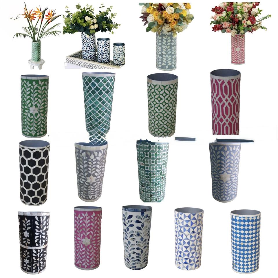 Jardinière en métal avec incrustation de os, faite à la main, de forme ronde, style minimaliste, pour la décoration de la maison, produit de luxe, exportations en gros
