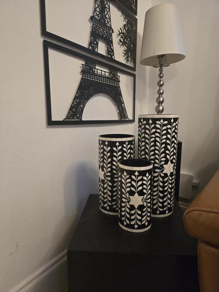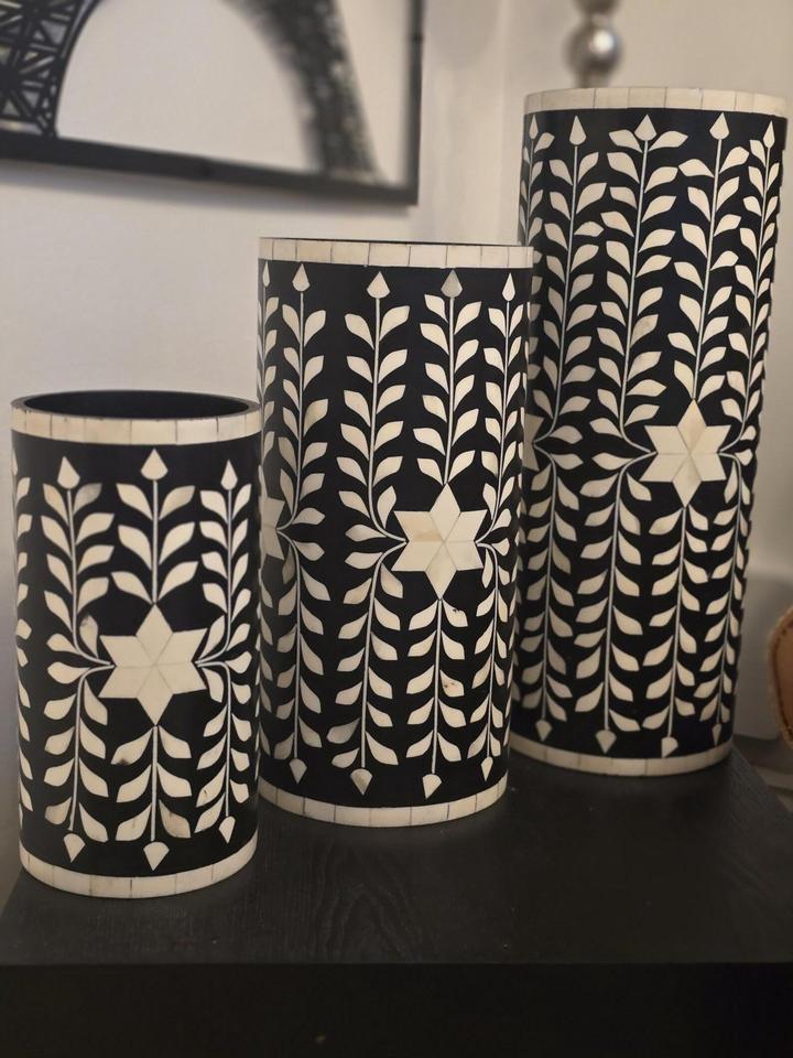 Jardinière en métal avec incrustation de os, faite à la main, de forme ronde, style minimaliste, pour la décoration de la maison, produit de luxe, exportations en gros