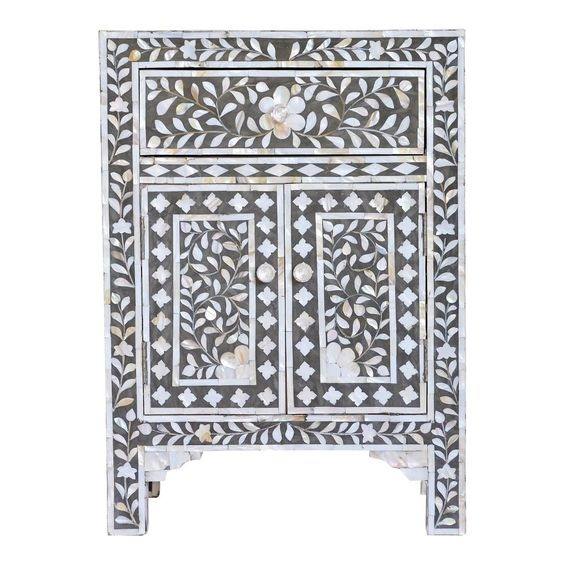 Incrustation d'os Table d'appoint moderne Floral | Motif complexe Appel intemporel Meilleure qualité de luxe pour salon salle à manger