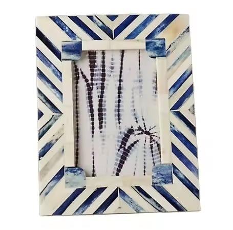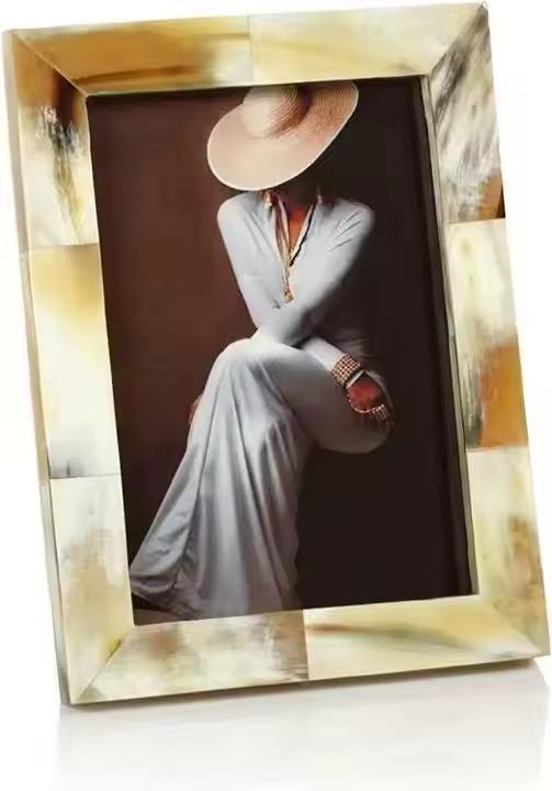Cadre photo rond en résine artisanal avec incrustation d'os