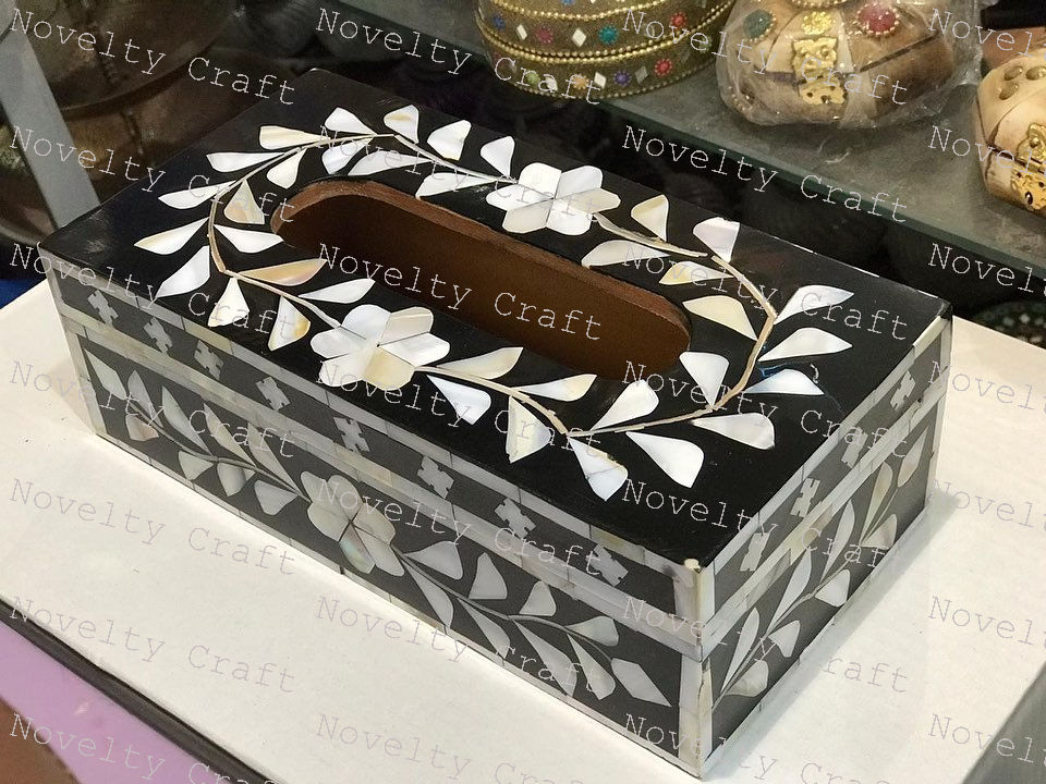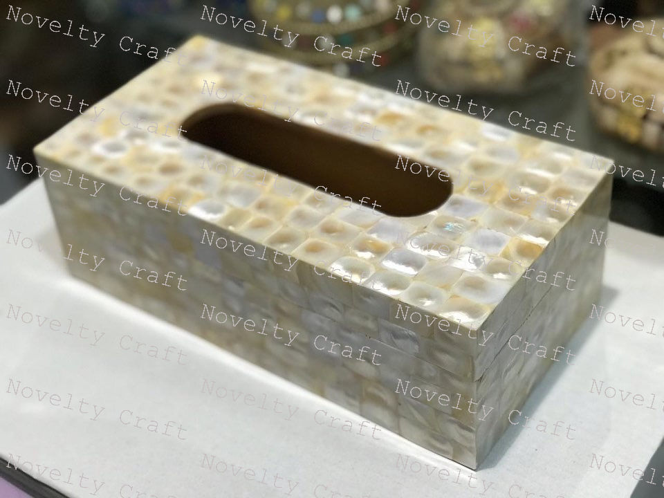 Boîte à mouchoirs en perles de luxe écologique directe d'usine incrustation d'os nacre personnalisable pour serviette de décoration de table d'hôtel