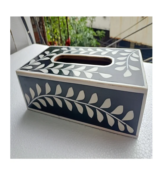 Boîte à mouchoirs décorative en os incrusté, boîte à mouchoirs de table, dernière création du fabricant indien en os incrusté.